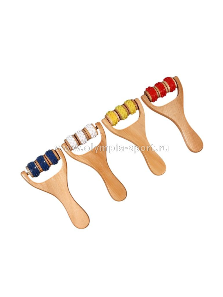 Массажёр деревянный Барабан роллер с пласт. шипами (3 ролика, 14*8*2см) OT